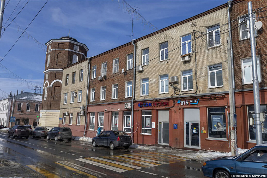 Улица Кирова. Дома, хоть и новодел, но, как мне кажется, весьма органично вписались в общий концепт с водонапорной башней.