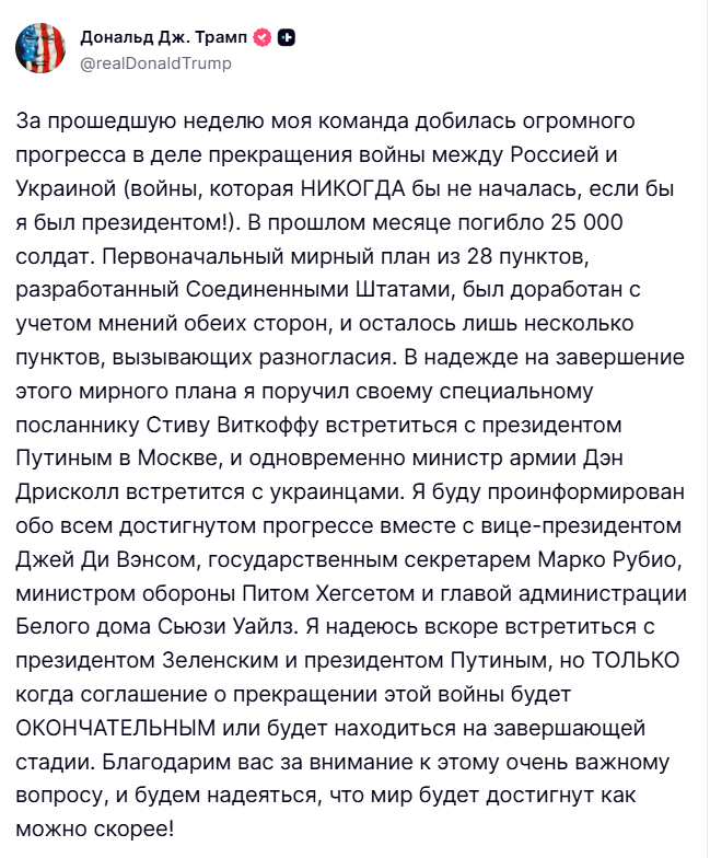 Скорее, мы бы увидели очередной раунд переговоров Умерова, Уиткоффа и прочих.