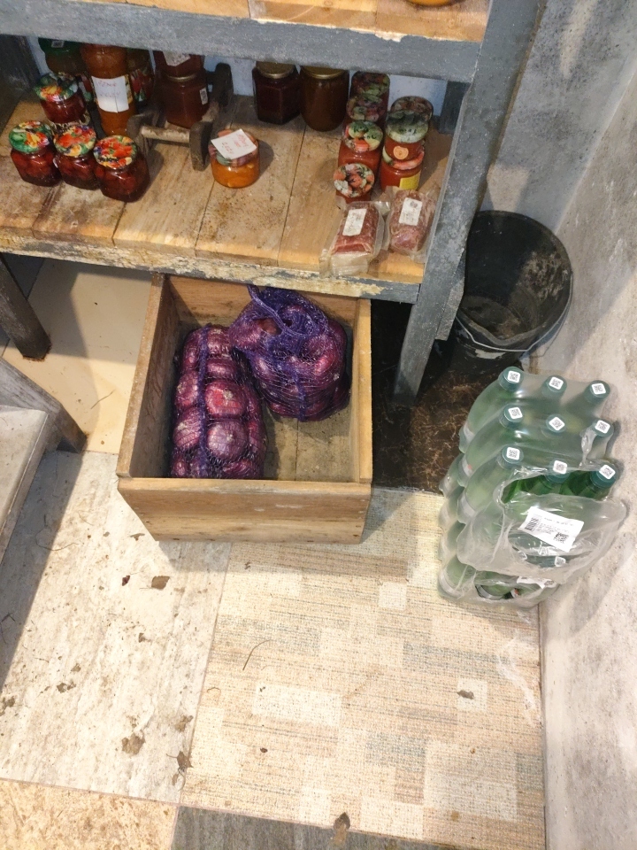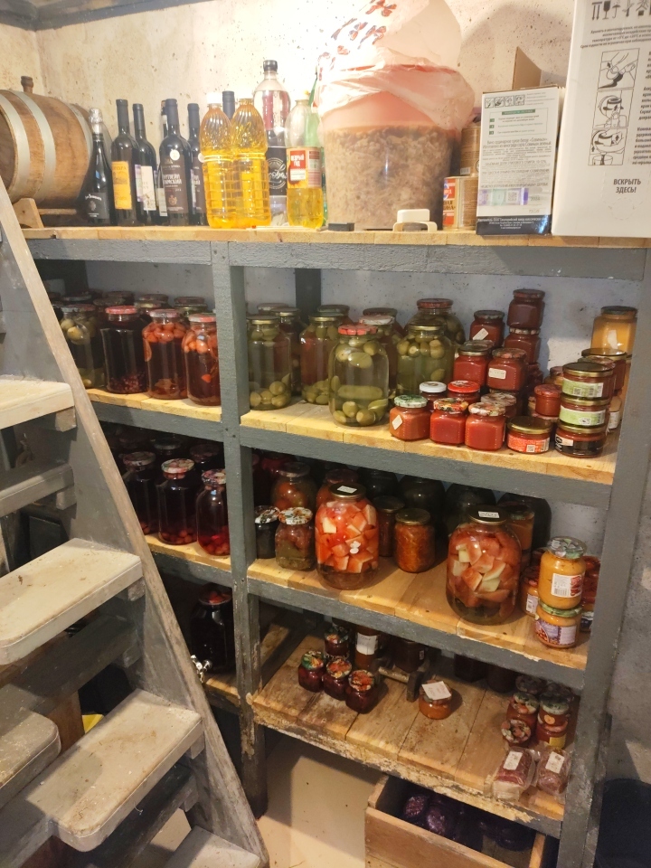 Изготовил ящик для картофана, занёс его в погреб, установил под лестничным маршем, картофель обрёл пмж. Ящик примерно на 170 кг.