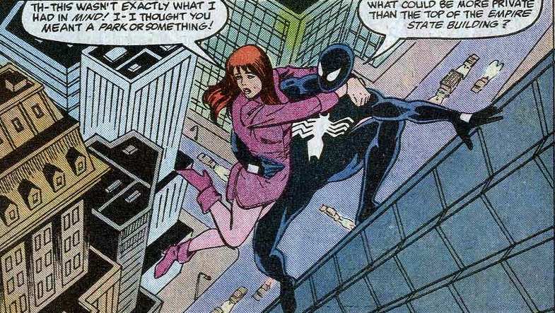 А в комиксе Amazing Spider-Man #290 Питер Паркер наконец-то решается задать Мэри Джейн «главный вопрос». Но обо всём по порядку. Питер Паркер уже определился, что с паучьей карьерой завязывать рано, да и Фелисия ему новых чёрных костюмов нашила взамен сгоревшего. Но всё равно такое ощущение, будто чего-то не хватает. Человек-Паук спасает мэра Нью-Йорка от террориста, и мэр всячески восхваляет Стенолаза – но даже после этого Питеру кажется, что всё как-то бессмысленно и пусто. По совету ЭмДжей Питер отправляется пообщаться с тётей Мэй – авось старушка что-знибудь умное посоветует. И действительно, тётушка напоминает Питеру о словах дяди Бена. Нет, не про большую силу и ответственность, о других. «Просто будь собой и всё будет ок». Самый бестолковый ванильный совет...но на Питера действует.