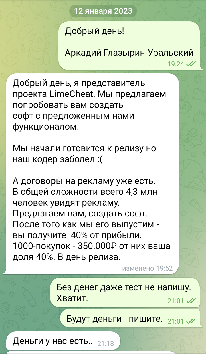 Вы просто бесплатно сделаете работу за кого-то. И всё. Продолжения не будет.