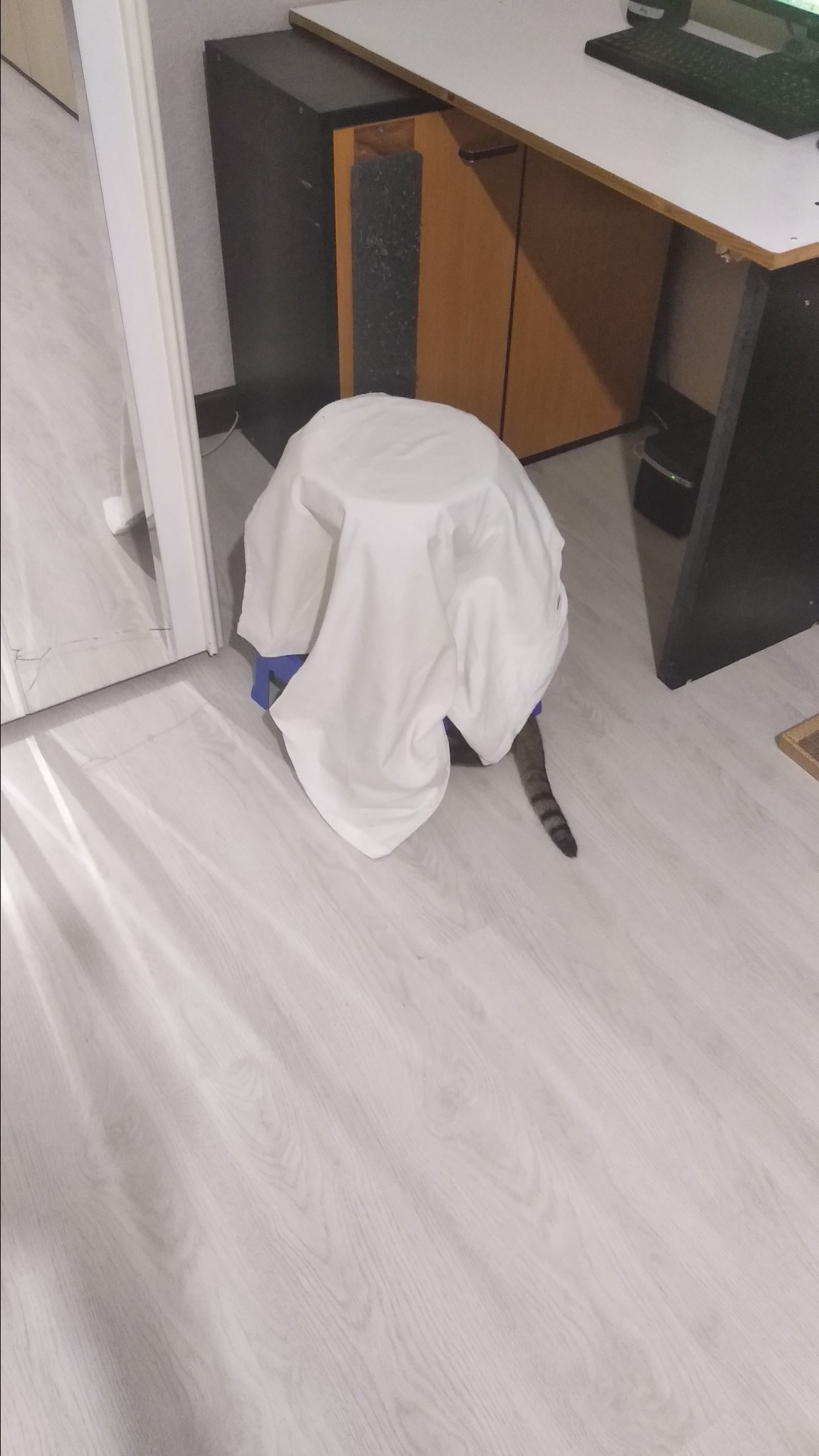 10 IVANYAA Поиски кошки 6 лет назад Тот момент когда ты 15 минут ходишь по всей квартире и ищешь кошку,а она сидит под стулом и играется с наволочкой) [моё] Трехцветная кошка Кот Прятки