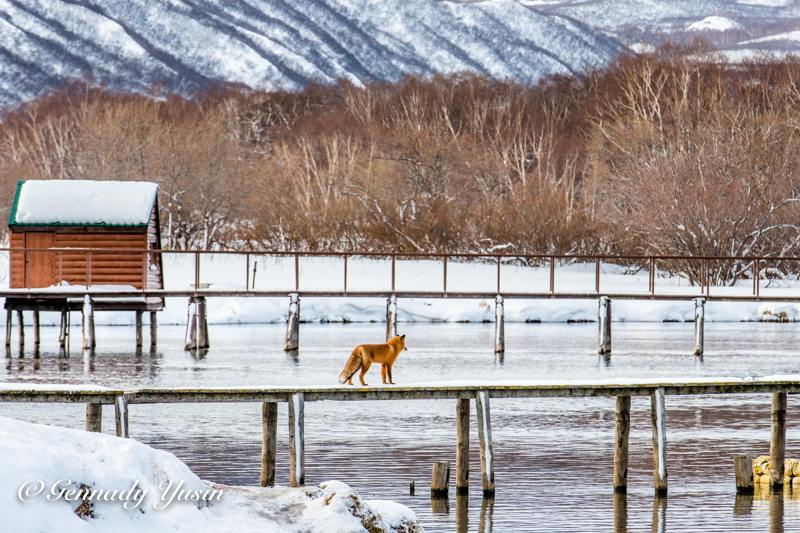 А вот осторожные лисы стараются обходить эти медвежьи места, чтобы не нажить себе проблем. Но сейчас все медведи ушли спать и осторожность уже ни к чему. Самое время осмотреться и похозяйничать немножко. А если повезёт, то и рыбки отведать можно. Ведь лосось ещё есть, а озеро замерзает только один раз в десять лет.