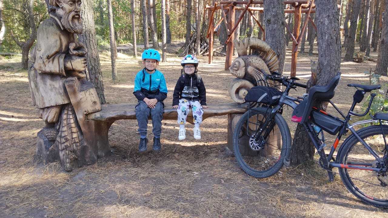 Расстояние до спутника и обратно около 30 км, проблемы были на обратном пути, когда дети начали по очереди засыпать прямо на велосипеде, поэтому иногда просто приходилось сходить с велосипеда и идти пешком, ну это все мелочи.