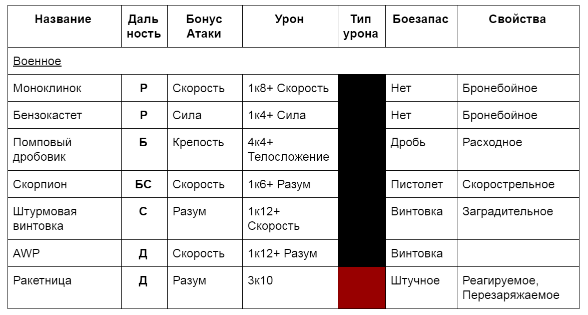 Военное и крупногабаритное доступно не всем классам, но является крайне мощным. Так что не советую ГМ-ам раскидываться им.