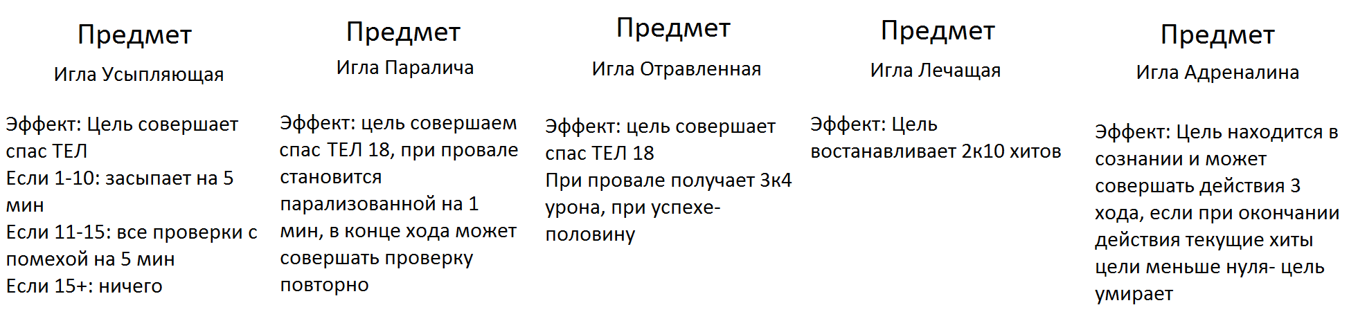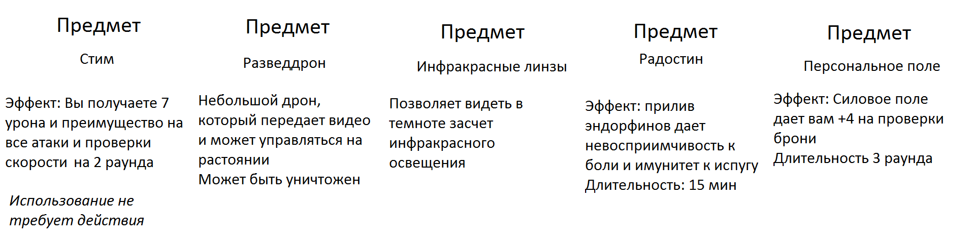В прошлой статье я обещал рассказать об оружиях и предметах в моей игре. Список того, что есть, неполный, да и в целом является скорее примером того, что можно сделать, а ГМ сам вправе решать о цифрах и предметах. Оформить это в красивый пдф не было ни смысла, ни времени.