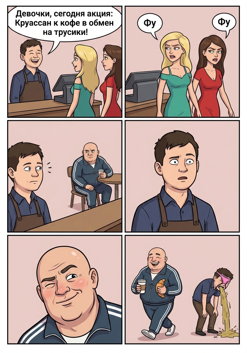 6 Faxmaq Похабный бариста 1 день назад t.me/nauvolnenie [моё] Контент нейросетей Бариста Комиксы Трусы Разврат Мерзость Нейронные сети Кофе Кофейня 1 1 Ещё 0