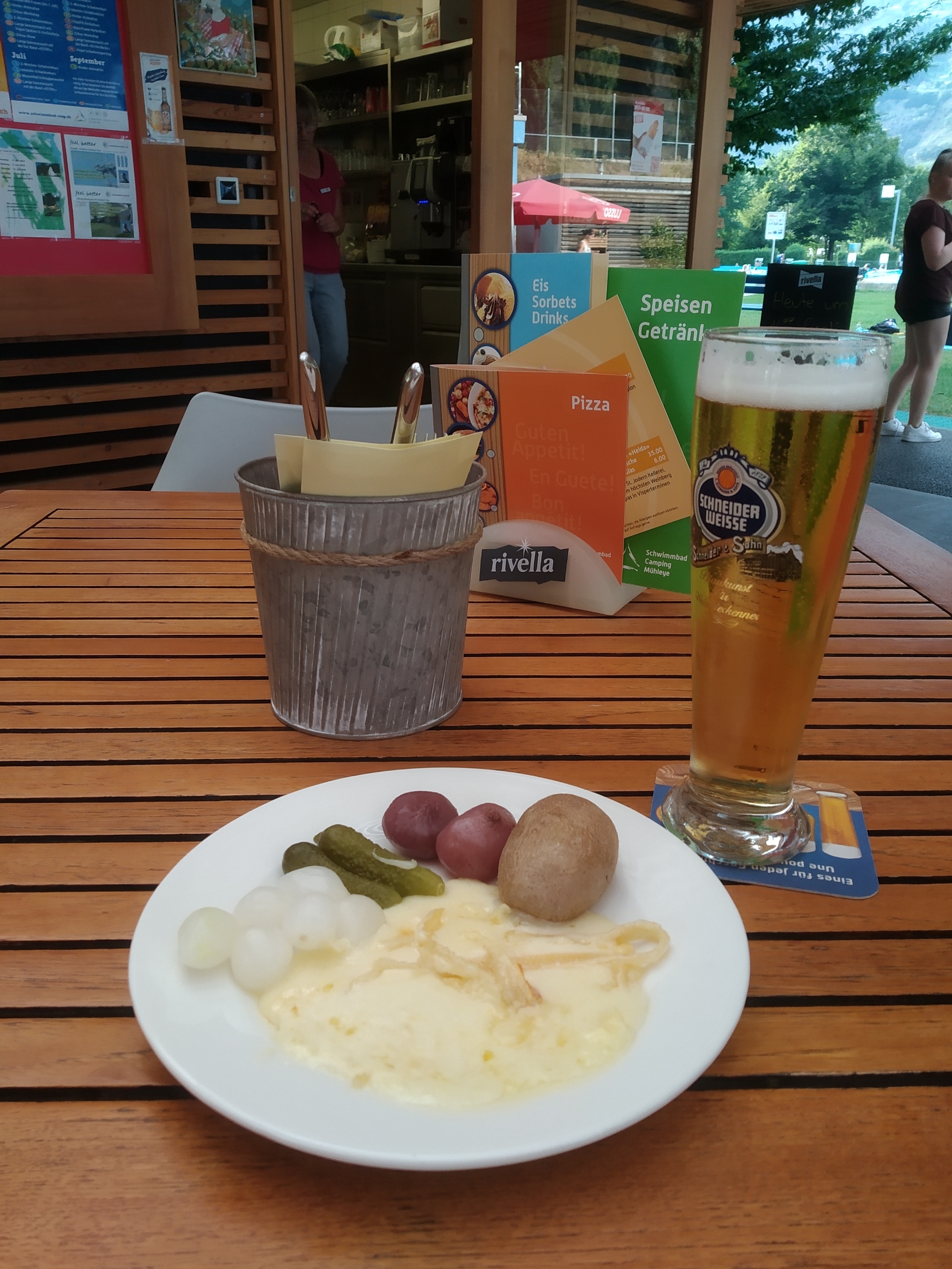 Кемпинг в городе Visp радует бесплатным теплым бассейном и картошкой с сыром за 6 евро! впрочем последним пугает скорее! особенно ценой и количеством!