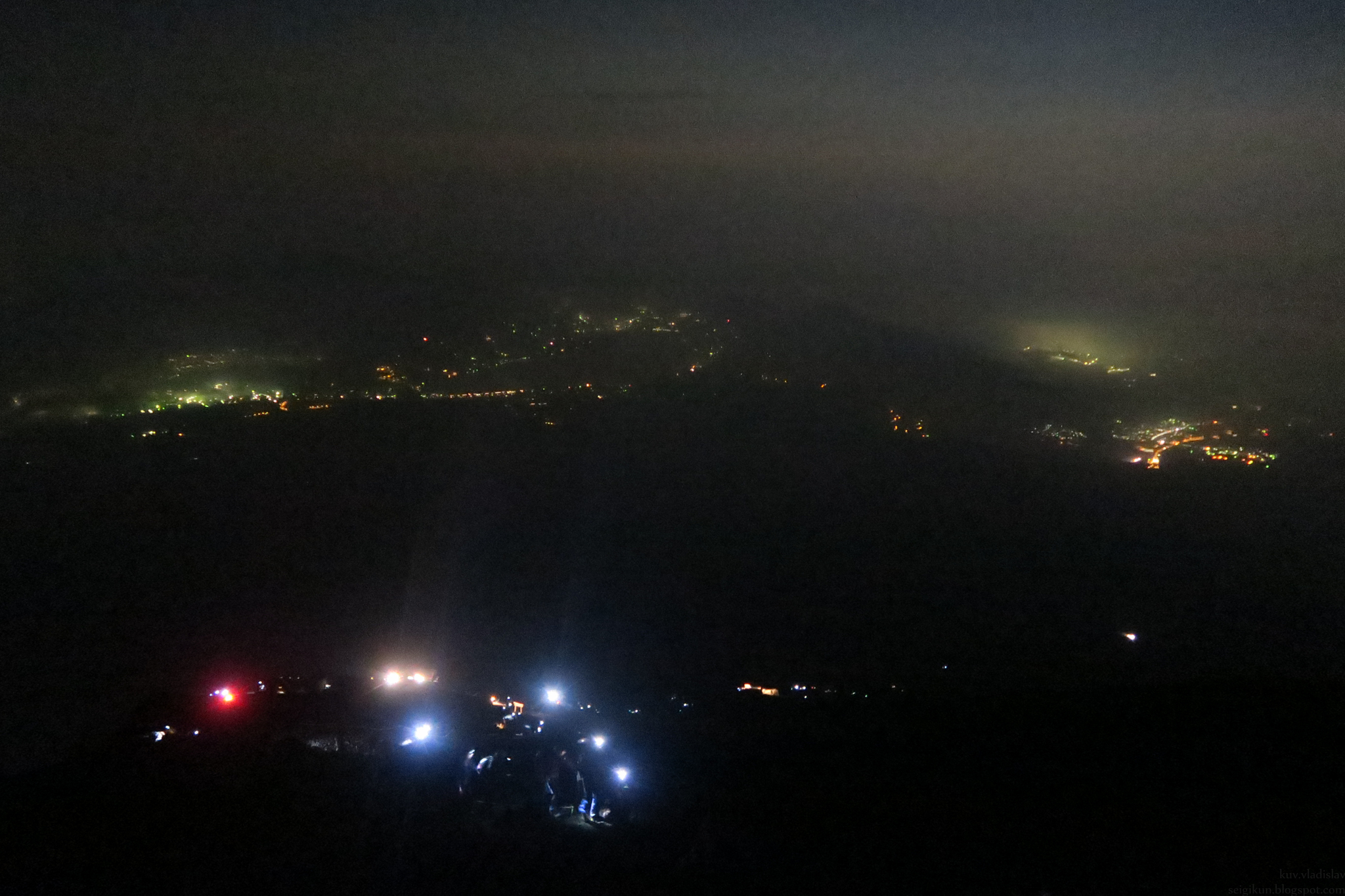 На вершине оказался в районе 00:00. Тогда я еще не осознавал, что это будет настоящим испытанием. Мне удалось сесть на очень хорошее место, с которого можно было наблюдать рассвет. Укутавшись в плед я уснул.