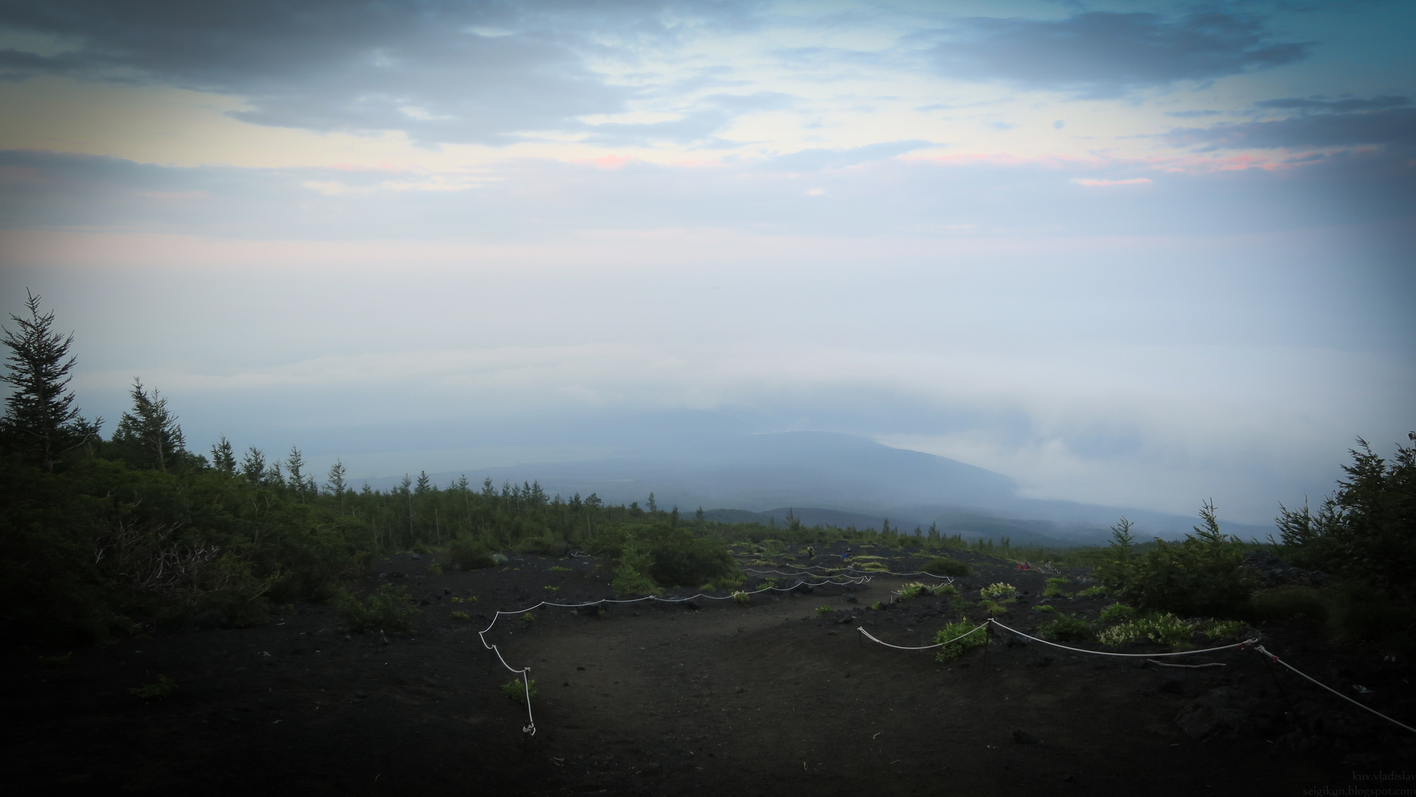 Утром знакомая решила возвратиться домой. Для нее это был первый поход такого плана. И это оказалось поразительно удачным решением, поскольку на вершине мы бы не выжили... У нее была обувь совсем не приспособленная для гор, да и одежда не та, а у меня была с собой совсем несоответствующая одежда для вершины. Оставив мне плед, она пошла пешком до станции Gotemba (御殿場駅), поскольку не удалось уехать на автобусе из-за того, что место нужно бронировать заранее.