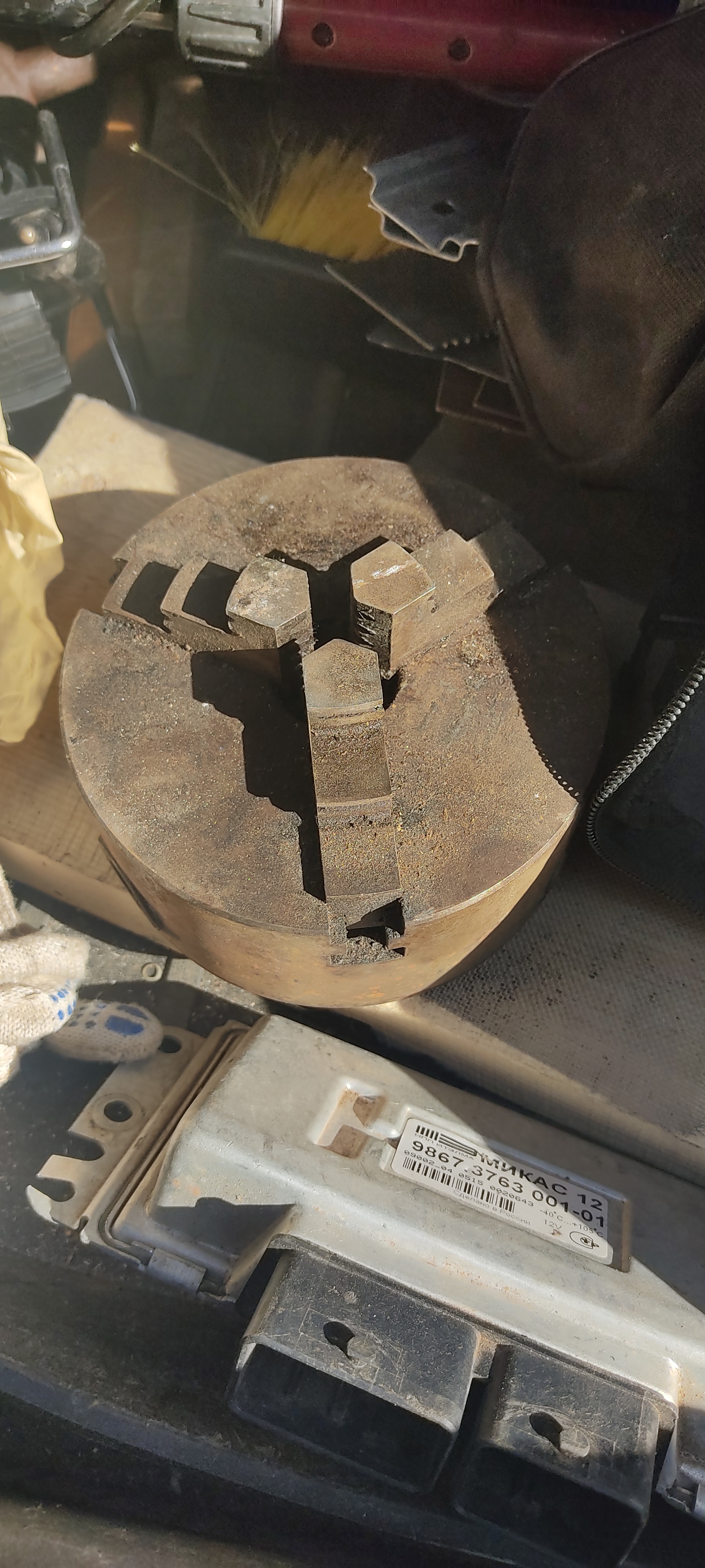 В один такой поход захожу просто так, и было видно что сгрузили какой-то инструмент, резцы, напильники, газовые ключи, старые телевизоры и какой-то хлам возможно гараж или мастерская, ну или я незнаю. Спросил разрешения порыться, и пошел на поиски ништяков. Разгребая завал, и мне вот прям под ноги выкатился вот такой вот красавец 130мм в диаметре, рядом и ключ к нему нашелся, копаясь рядом нашел только ещё один обратный кулочёк, причем только второй номер....остальные наверное где-то в куче глубже осталось. Не смог найти.