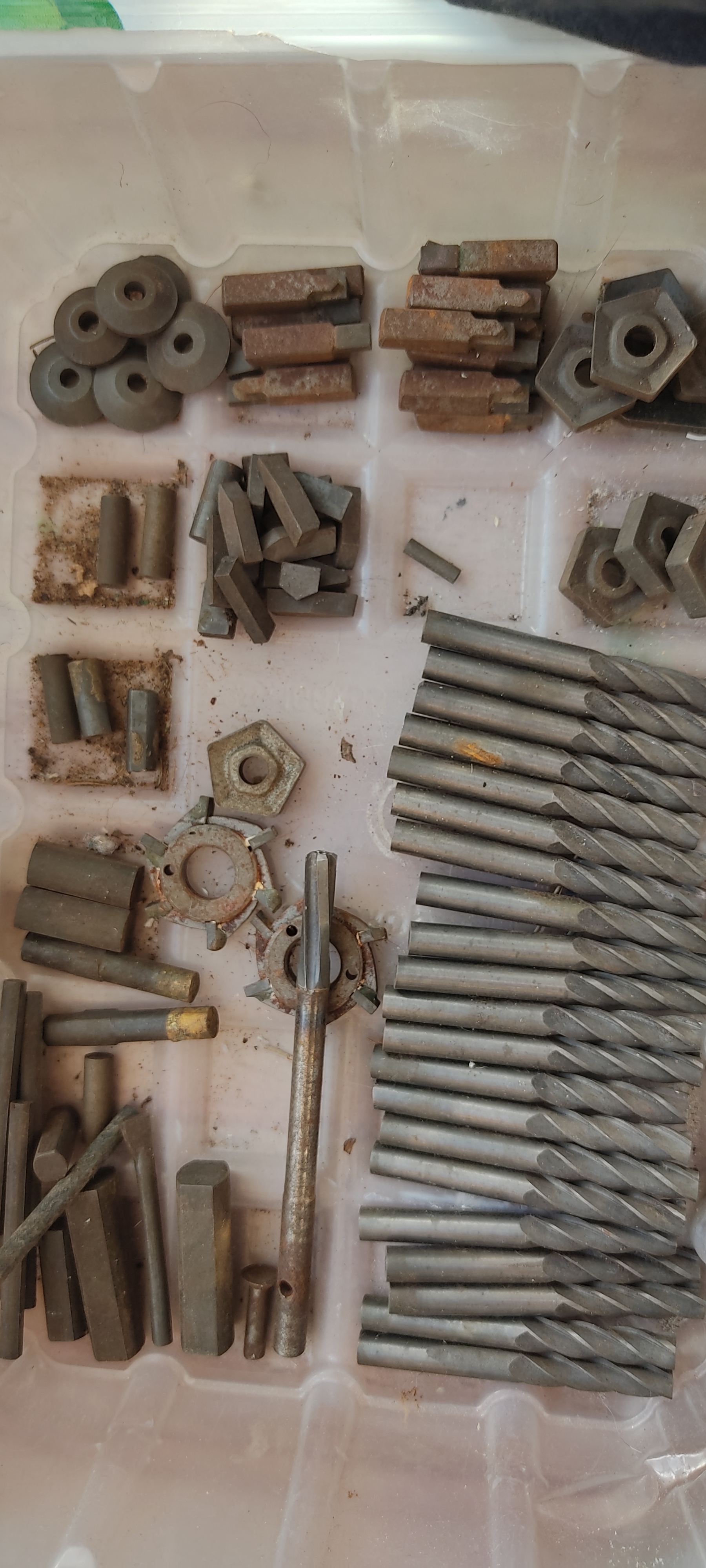 Фрезы с права на 6 мм, цилиндры слева непонятно предназначение, но по весу очень тяжёлое (на наждаке плохо обрабатывается), всего скорей заготовка под какой-то инструмент, материал не понятен.