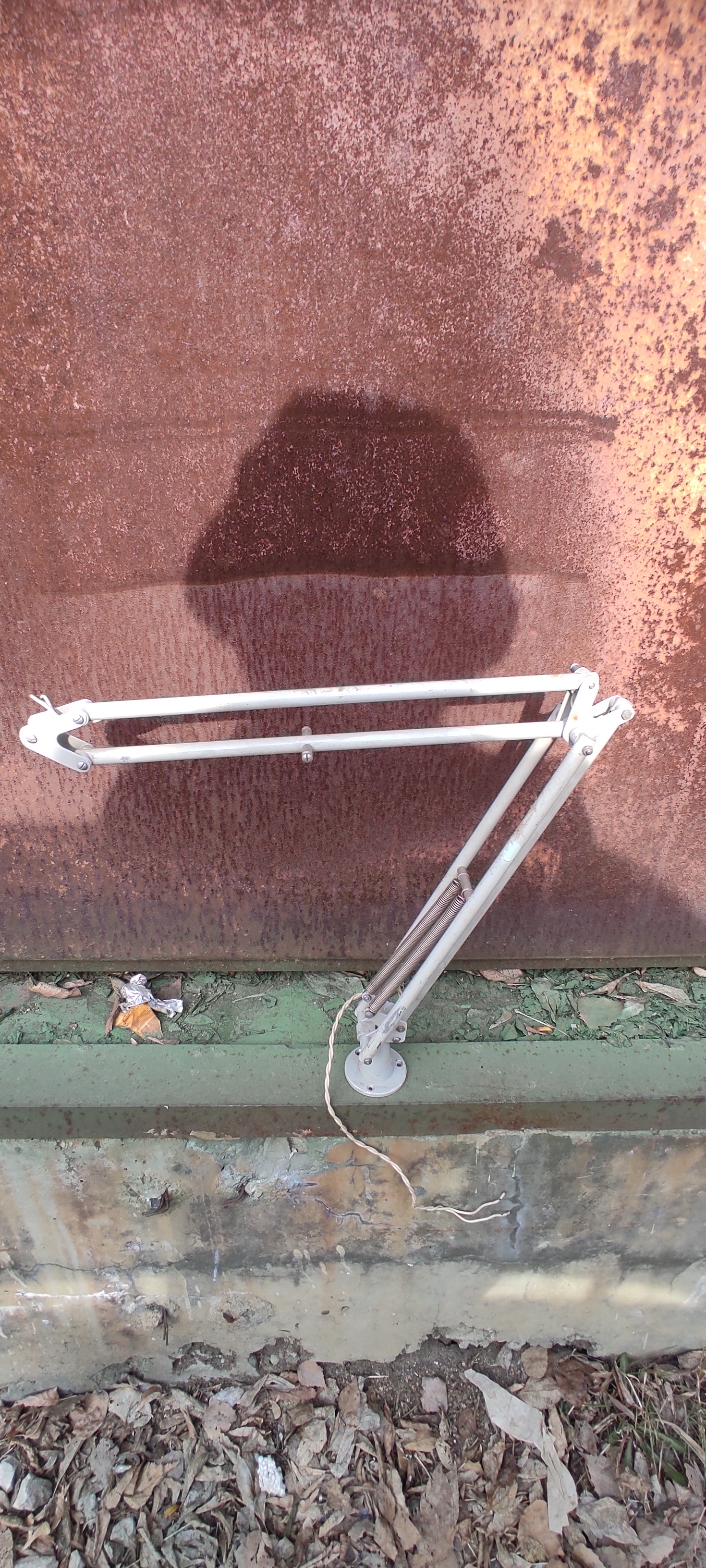 Ещё была взята нога от настольной лампы(не комплектная)но интересная своей конструкцией.прикручивется к столу, собрана на алюминиевых трубках, прародитель современных настольных ламп. Похоже на внутризаводское исполнение, т.к. отсутствуют клейма, цена, бирки.