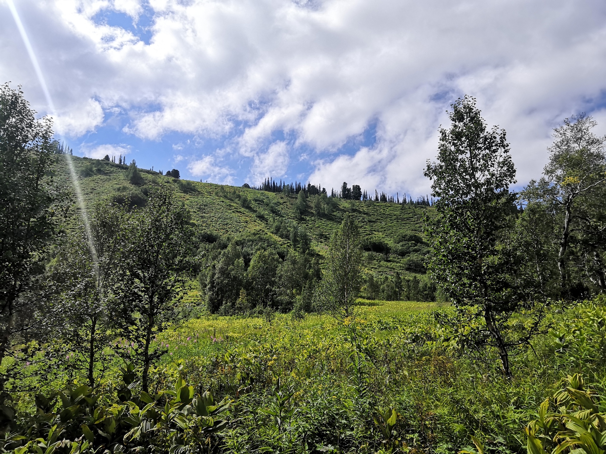 Идя по этим лесам 2 день, пришли к мнению, вообще по Большому кругу стоит сходить раз - для галочки, не больше. Потому что все красивые виды и приятные глазу места закончились ровно на озере Туралыг, все, потом можно разворачиваться и идти обратно, либо начинать Большой круг с того места, где мы закончим для того, чтобы сначала так себе местность, а потом с каждым километром все красивше и красивше.