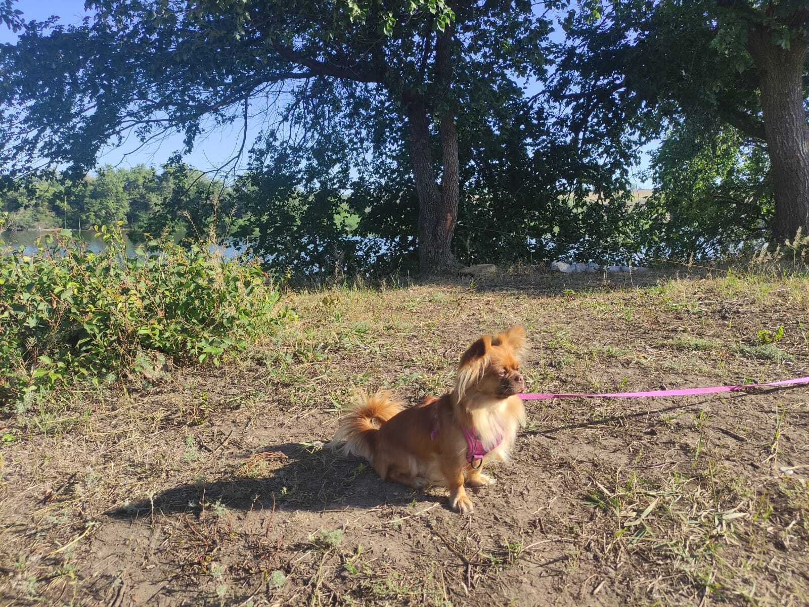 Пёс активный, ест, играет.