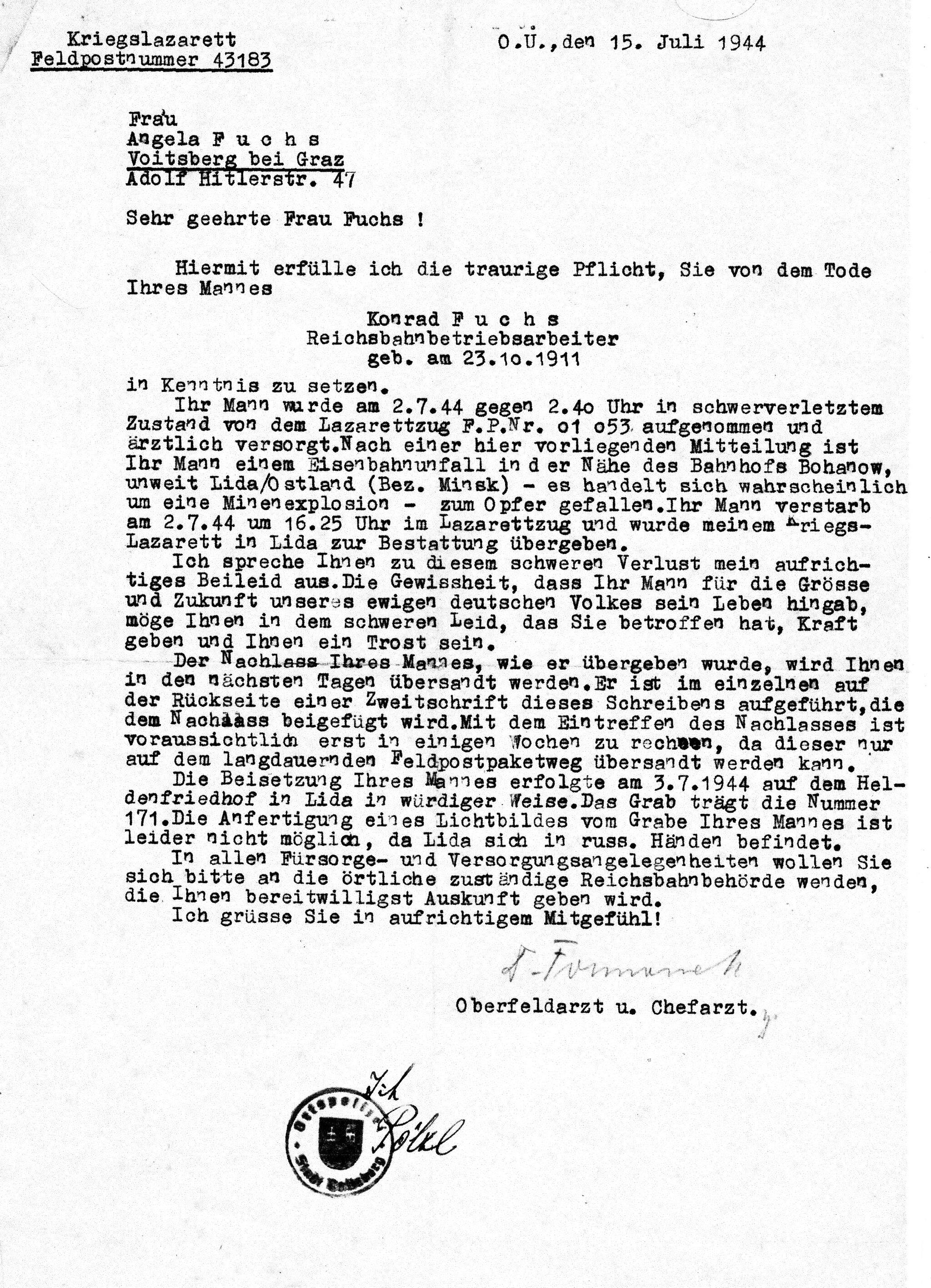 Но прочтем похоронку и посмотрим насколько подробно описаны последние моменты жизни немецкого машиниста, погибшего в дни "Рельсовой войны".