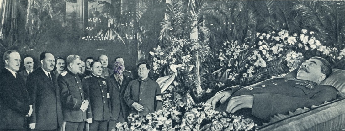 На обновлённом Мавзолее стоят не только советские партийные деятели, но и иностранные гости – Пальмиро Тольятти, Чжоу Эньлай, Отто Гротеволь, Вылко Червенков и прочие. Очевидцы говорят, что в день похорон Сталина было влажно и пасмурно. Из-за такой погоды присутствовавший на похоронах президент Чехословакии Клемент Готвальд сильно простудился и вскоре по возвращении в Прагу умер от разрыва аорты. В Чехословакии какое-то время ходили слухи о том, что он был отравлен во время визита в Москву.