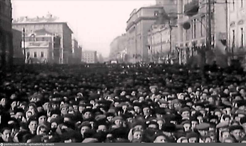 Леонид Симановский, семиклассник: Мы пересекли улицу Кирова (ныне Мясницкая) и вместе с массой народа пошли по Сретенскому бульвару в сторону Трубной. Но люди шли не по бульвару (вход на него был перекрыт), а по тротуару с левой стороны. Вдоль тротуара стояли грузовики, чтобы никто не мог выйти на проезжую часть дороги. В грузовиках были солдаты.