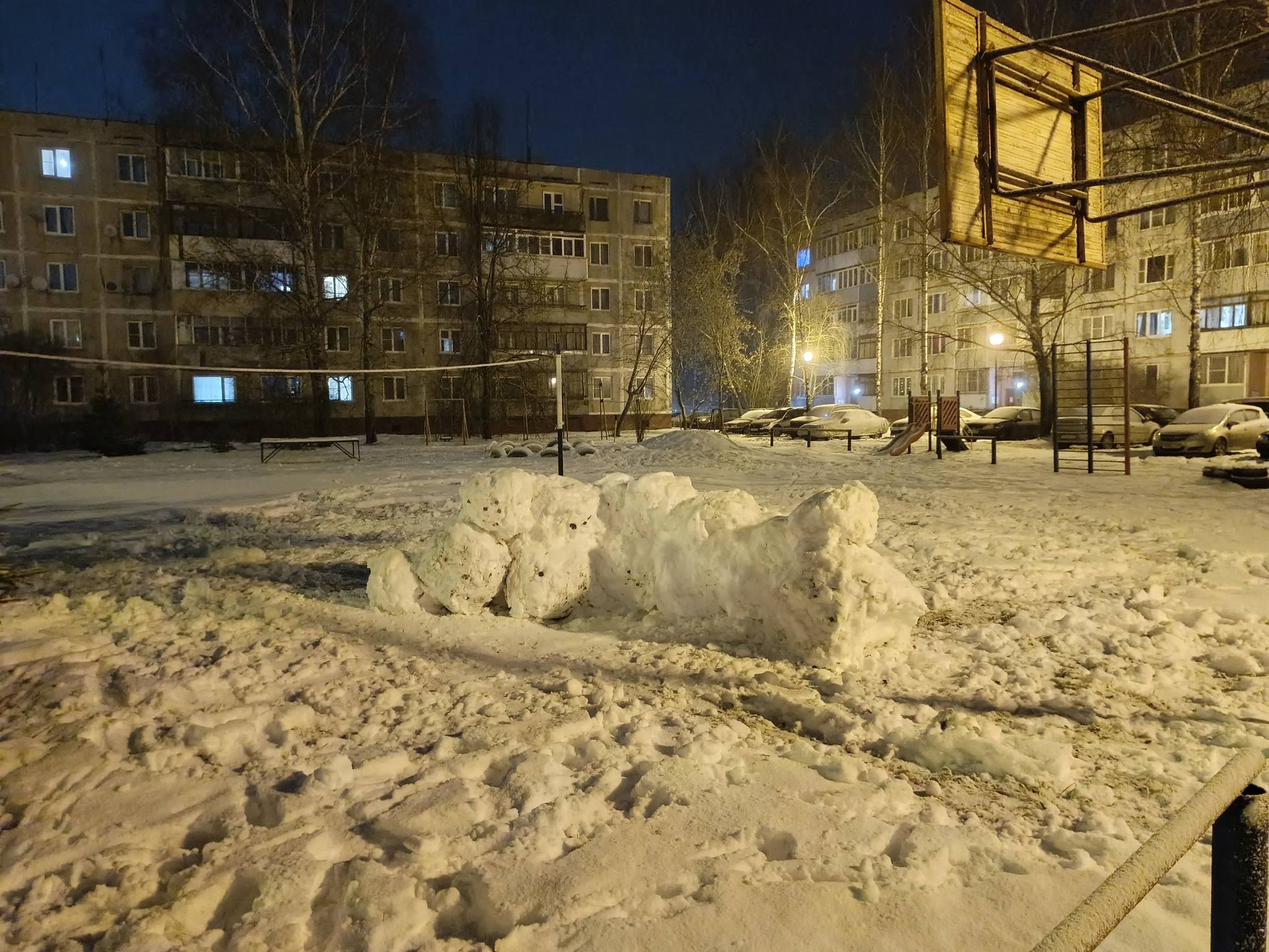 Гулял вечером с собакой по своему дворику, где провел детство и юность - был приятно удивлен, что дети ещё строят снежные крепости)
