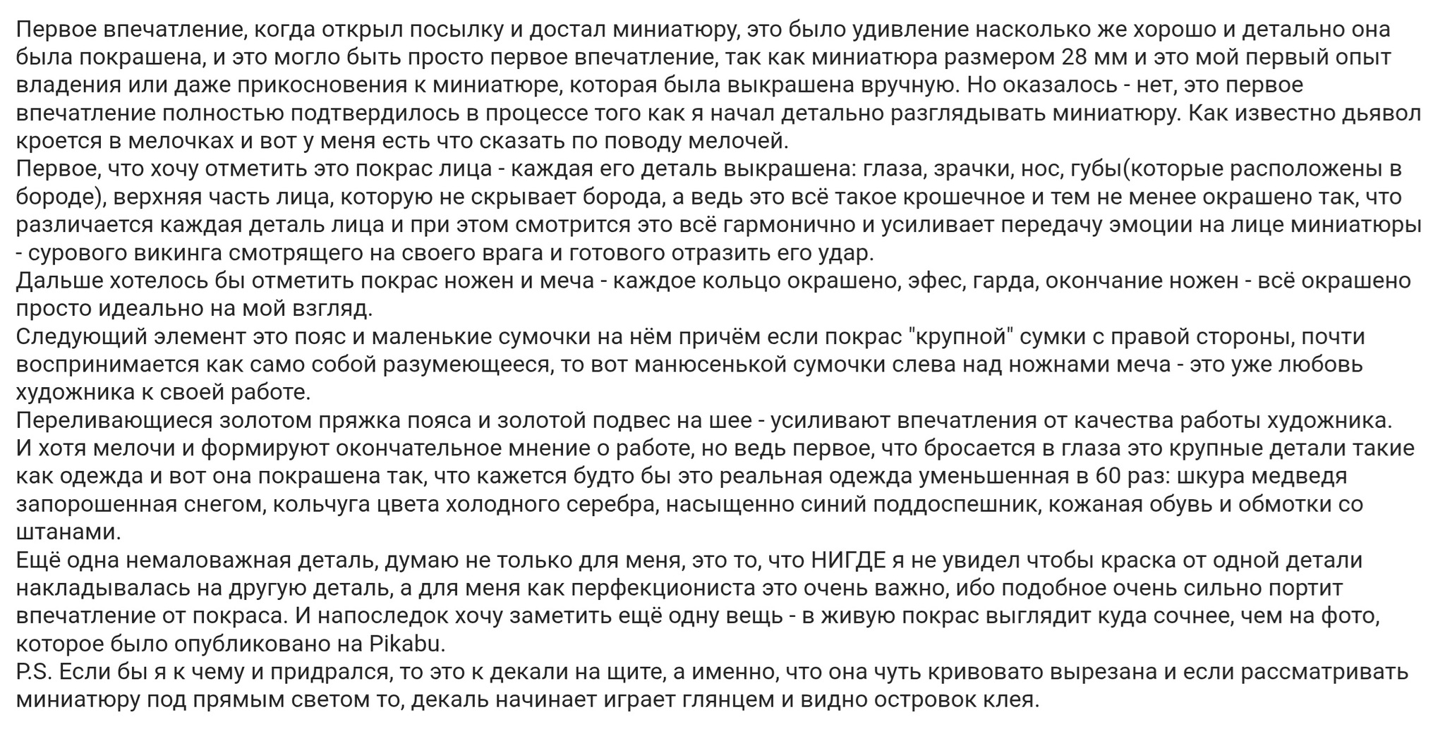 Кстати, вот очередной отзыв победителя в розыгрыше маленьких 28 мм миниатюр - пикабушника @BerserkV - человек, однако, серьёзно постарался описать свои впечатления
