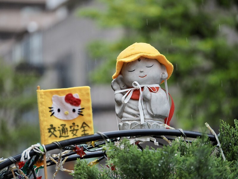 В Японии Кшитигарбха, известный как  Дзидзо, или почтительно как Одзидзо-сама, — одно из самых почитаемых божеств. Его статуи — массово понатыканы по всей Японии, особенно у обочин дорог, в храмовых садах и на кладбищах. Жителям пограничья между Европой и Азией, свойственно тащить всякое интересненькое от соседей. С запада к нам в сады пришли садовые гномы, но как-то не прижились, последние годы в садах все больше сущностей с востока: каменных фонарей торо и скульптурных изображений бодхисатвы Дзидзо.