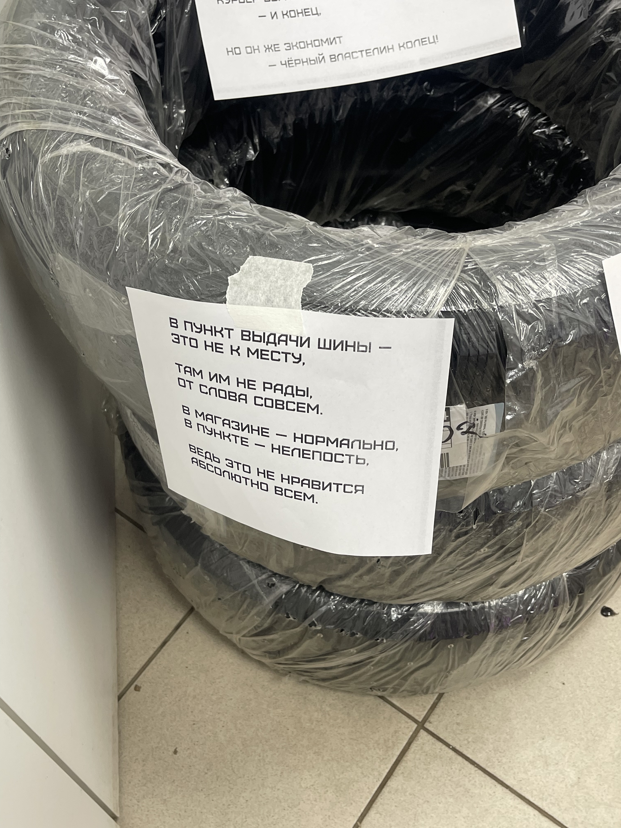 83 m00dy Сервис Покрышки в пвз OZON 2 месяца назад Заходил тут в озон за своим заказом, и увидел креатив на заказанных кем то зимних колёсах. Ну и запах на весь пвз стоял соответствующий. [моё] Авто Зимняя резина OZON ПВЗ Длиннопост 174 38 14 3 2 1 1 1 1 Ещё 4