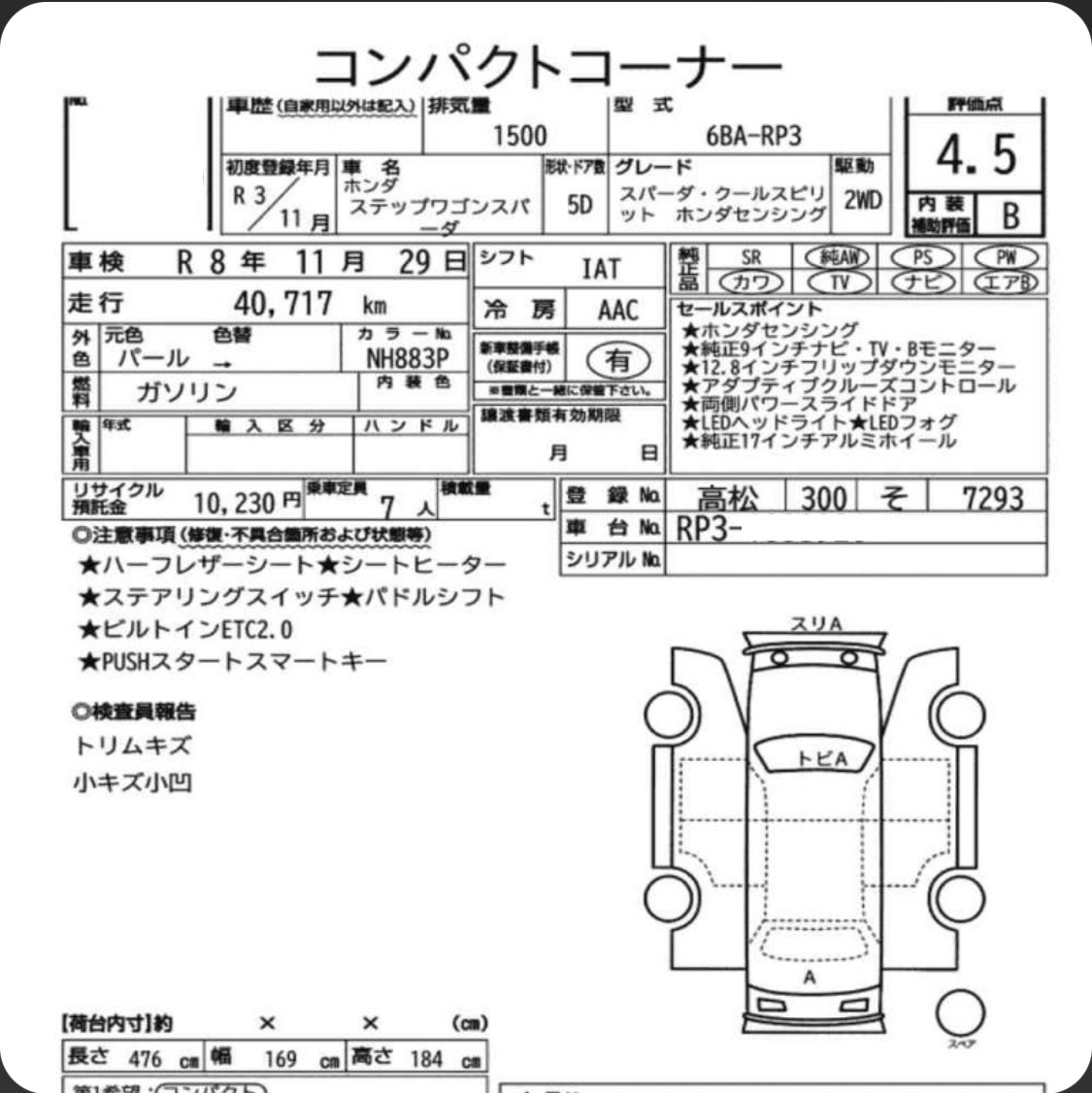 Как видим из отчета, у автомобиля было три аукциона, на первом(в начале декабря) он был продан за 3 300 000 йен, переехал на другой аукцион и его попытались через неделю продать, но последняя ставка оказалась 3 100 000 йен и его не продали (отказались отдавать, оно и понятно, ведь он был приобретен ранее на другом ауке за 3 300 000 для перепродажи), через несколько дней его на этом же аукционе выставили повторно (для машины это уже третий аукцион) и она досталась мне по результатам переговоров (а именно за 3 570 000 йен). Вроде все отлично, аукционники совпали, ничего с машиной не было, не считая перепродажи внутри рынка Японии (и тут перекупы, куда ж без них), меня это не сильно напрягло, но…..зацепила одна деталь с данного отчета над которой я ломаю голову до сих пор и может кто либо подскажет как так?