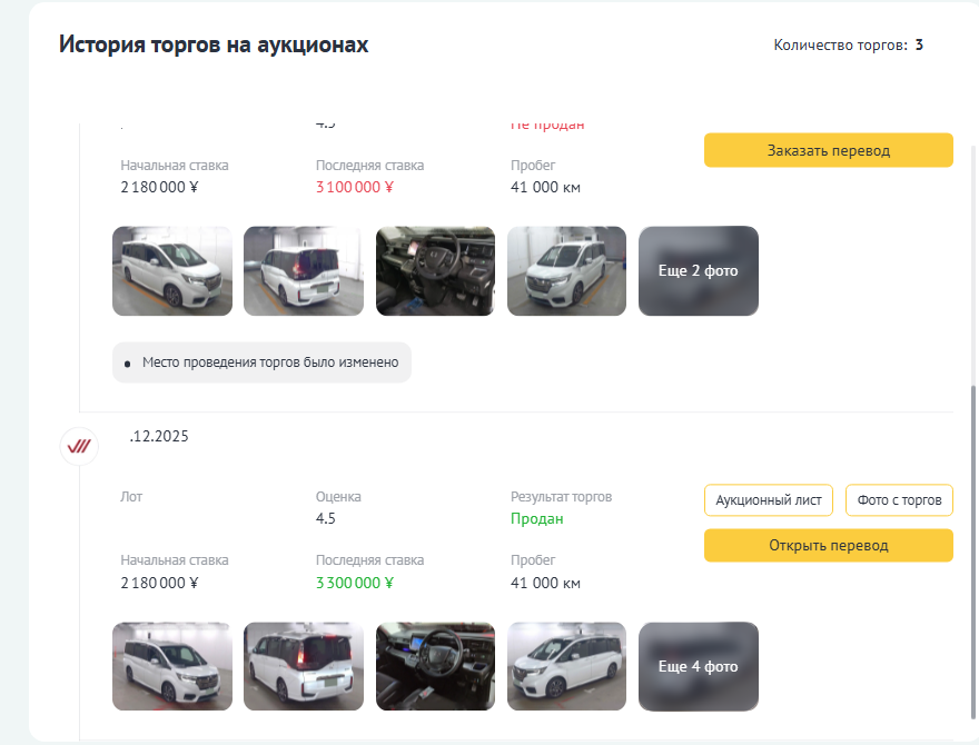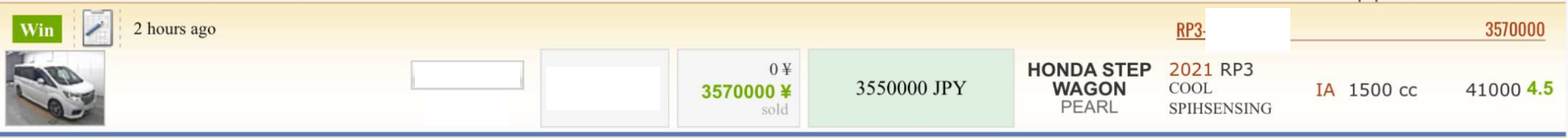 По итогу в декабре 2025 года, после не многочисленных ставок на то что подходило под мои требования, но увы не под мой бюджет, как выяснялось по окончании аукциона, цены окончания торгов были выше нашей финальной ставки. Автомобиль нами был все же приобретен (а как иначе могло быть?) по результатам переговоров, т.е человек через которого я брал машину, он же посредник, предложил вариант, по которому мы с ним согласовали бюджет именно этой покупки, результатом чего автомобиль стал нашим (тут и далее все данные по аукциону и машине я затер, думаю что их не обязательно здесь светить, хотя если кому надо думаю их можно легко найти на аукционной статистике).