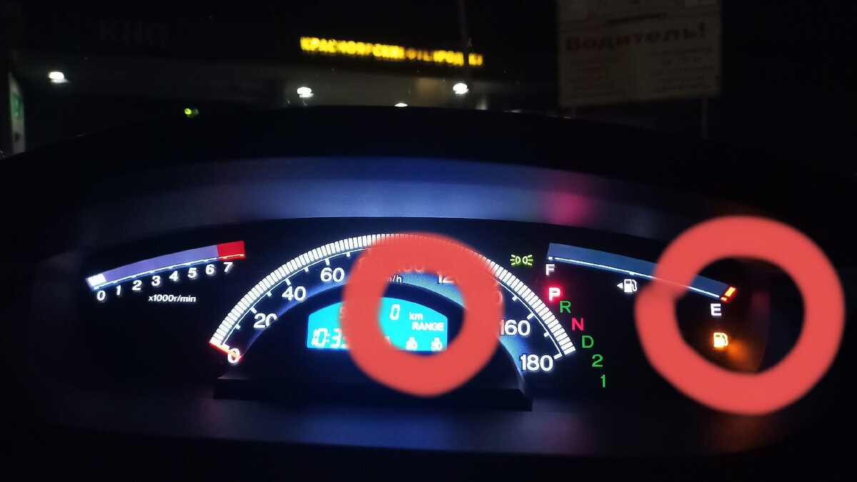 Высушил бак в ноль (красным обвел на фото). Но это не страшно было, так как в багажнике на такой случай полная канистра. Пришлось заправляться на дорогой заправке.