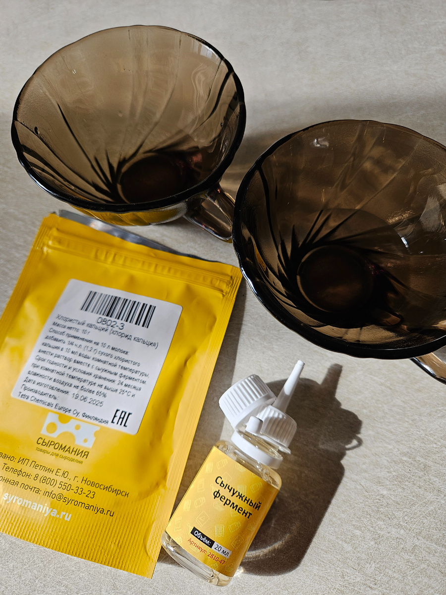 Сычужный фермент (видела на просторах баталии в комментариях по поводу идейно правильных ферментов и их использования. Но для меня пока это темный лес. Киваю и беру тот, что написан в рецепте)