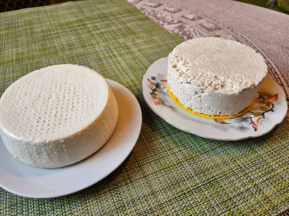 И в качестве дополнения. Я тут попыталась сделать сыр с добавками в лице грецких орехов. Везде, где я читала, сказано добавлять послойно в форму при выкладке сыра. Я так и сделала. А зря. Сыр плохо спрессовался и разваливался. Пришлось на этапе паровой бани варварски все перемешать до однородности. Это почти спасло сыр. Он схватился, но все равно хуже, чем без добавок. И по итогу закис уже в холодильнике. ТАк что тут у меня провал. Буду подбирать варианты.
