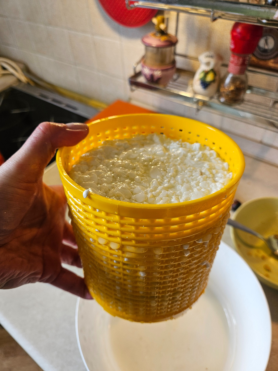 Как я уже писала, дошли мои шаловливые ручки и до сыроварения. Процесс этот, безусловно, интересный и захватывающий, но достаточно сложный. Особенно на "входе". Я честно смотрела ролики, читала статьи и пыталась вникнуть во все хитросплетения сыроварения, доступные в интернете, но только голова пухла и ничего понятней не становилось. Везде очень разные ингредиенты, методы, технологии и прочие условия. То яйца и сметану надо, то фермент нужен, то - не нужен, то пляски с бубном, то кровь девственниц. Я окончательно запуталась и хотела было отложить до лучших времен, но попался мне на глаза на маркетплейсе набор для чайников. Он включал в себя необходимый минимум инструментов и ингредиентов и, самое главное, книжку с рецептами. По отзывам вроде все было хорошо и я заказала. Не прогадала. Рецепты были хорошо написаны, хотя часть сыров я сразу отложила на потом как повышенной сложности. Проведя некоторое количество экспериментов и перепортив кучу молока, я все же добилась хорошего результата. И теперь хочу поделиться с вами рецептом сыра качотта. Это полумягкий сыр без особых изысков, но, что для меня было важно, не базовый творожный типа адыгейского, который предлагался везде к домашнему изготовлению, и который я не люблю.