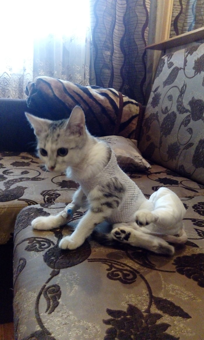 Лапка шла под удаление, т.к. была сломана в бедре, и колено было сильно повреждено. Лапа просто была бы не функциональная, и требовала бы пожизненного лечения. Доктора решили, что без нее будет лучше.