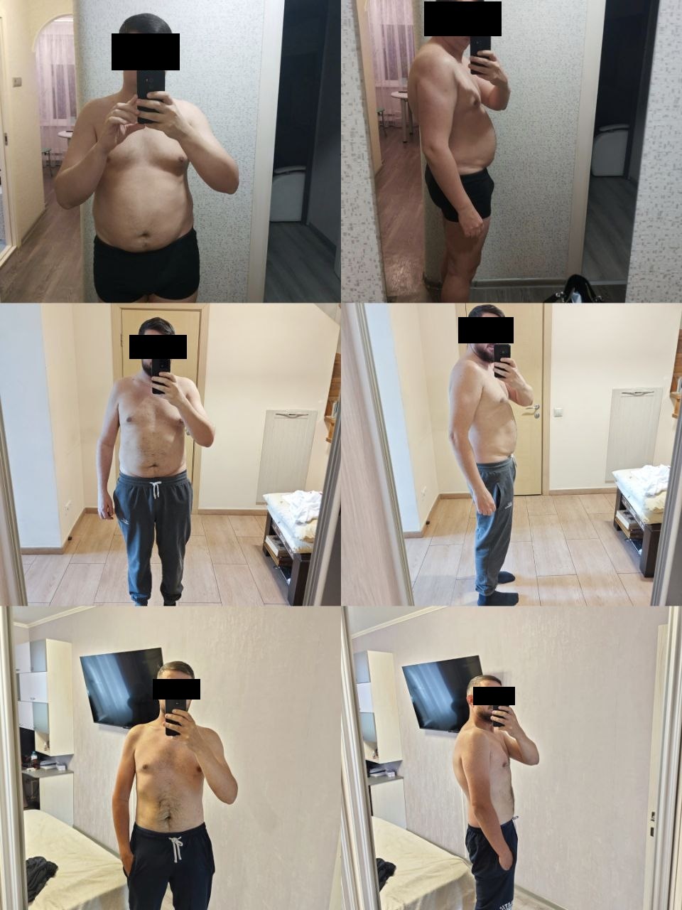 И те кто любит до и после, с промежуточным периодом(120,95,80 - вес на фото сверху вниз)