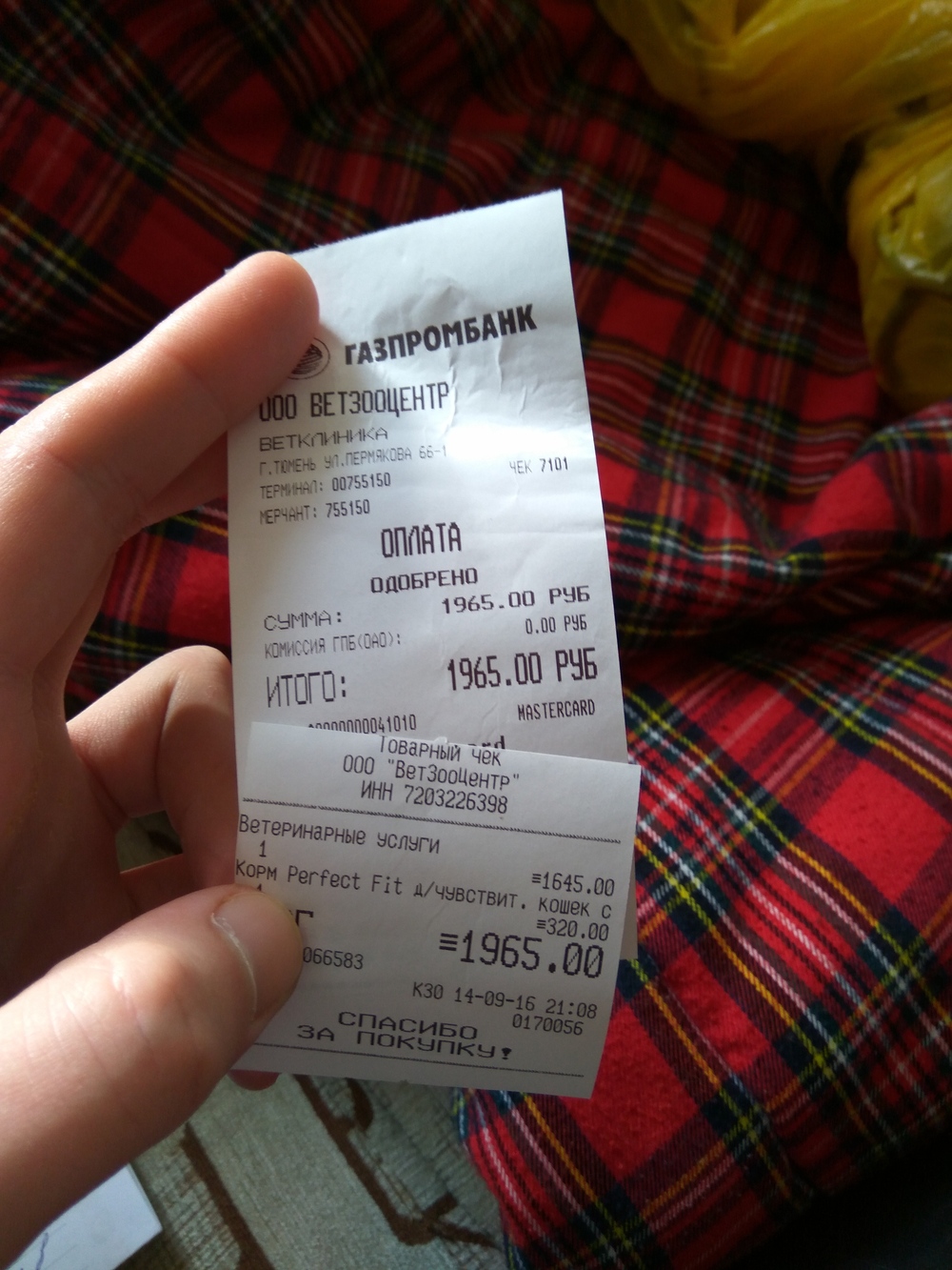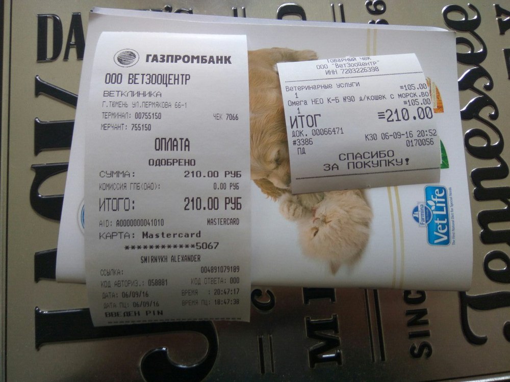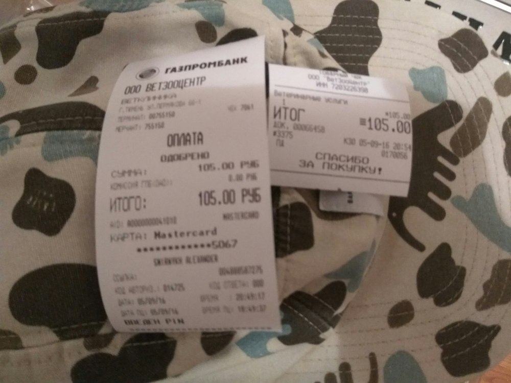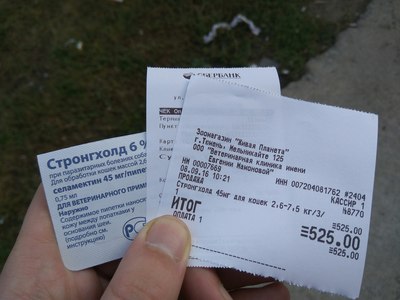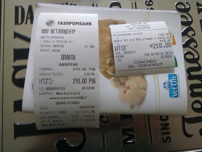 Кошка стала очень апатичной, постоянно прячется, не дает себя погладить. Я сразу же обстриг все комки шерсти, а это вышло почти на половину тела. Собрал вещи, и поехал на свое новое место жительства уже с кошкой. По приезду сразу же побежал к ветеринару, благо клиника находится в соседнем доме. Провели первичный осмотр, первую чистку ушей, обработку глаз, вкололи антибиотиков, проглистогонили. Чек вышел в общем-то не большой, на 1000 деревянных, но увы, это были последние деньги, т.к. на кануне все было отдано за оплату квартиры.