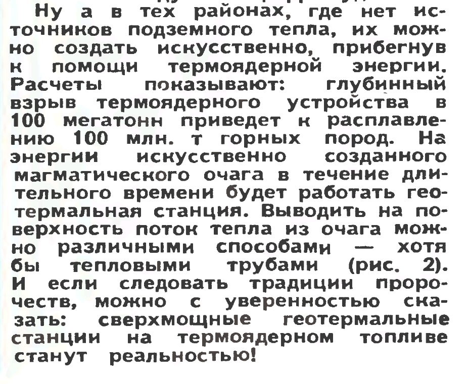 7 barster Пётр Пустота Полет мысли поражает 12 дней назад "Техника-молодежи", N1 за 1973г. Про геотермальные станции. Для ЛЛ: если недра холодные - подогреем. Для справки, бомба "Кузькина мать" рванула на примерно 50Мт. Можно было и больше, но не решились СССР Геотермальная Энергия Термоядерная 1 1 Ещё 0