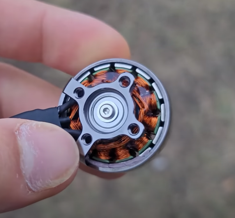 И у меня прямо сейчас в ящике штук 50 разных моторов, и такой намотки я не встречал нигде. На наших моторах большое сечение проволоки и очень ровная намотка. Плюс магниты без зазоров. По идее это всё повышает КПД. Но в такие дебри не буду лезть, мне главное чтобы он летал нормально, и груз тащил. Поэтому ждем погоды, чтобы полетать на полигоне и всё проверить.