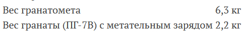 Согласно Сети, вес РПГ-7 без заряда - 6.3 кг, заряд весит ещё 2.2.