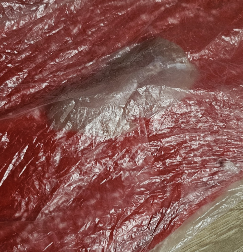 2. Накрываем целофановым пакетиком и отбиваем молотком. Пакетик нужен для того, чтобы молоток не разрывал само мясо на ошметки и они не прилипали к молотку.