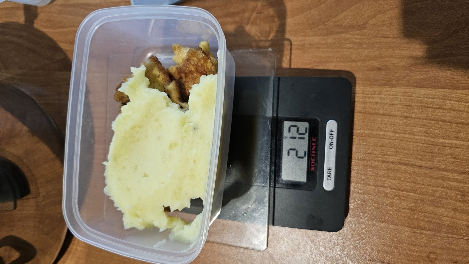 Собственно, основное блюдо готово. В качестве гарнира я сварил картошку и намял пюре. Причем я делаю его только на молоке(мама, например, разводит с водой для экономии). По итогу у меня получилось 1кг мяса и 2кг гарнира. Раскидываю по судочкам в пропорции 1 к 1.