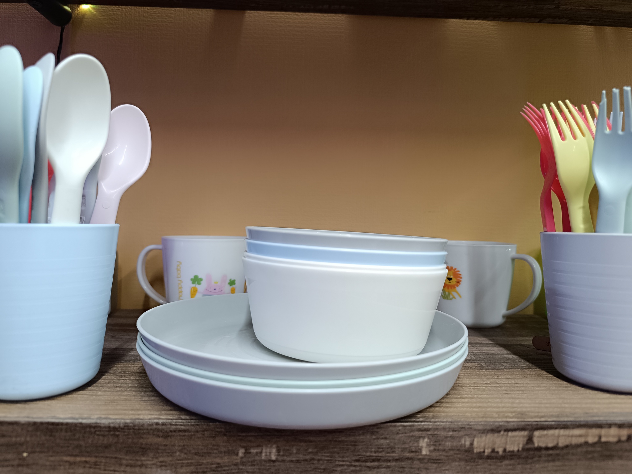 Набор пластиковой посуды. Дети действительно роняют все, даже в 4, даже в 7 лет. Шило в попе никто не отменял и опрокинутый стакан это норма. У меня была посуда на присосках, мне не зашло. Ребенок отрывает, а из-за силы, котрую он прикладывает, все разлетается по всей квартире.