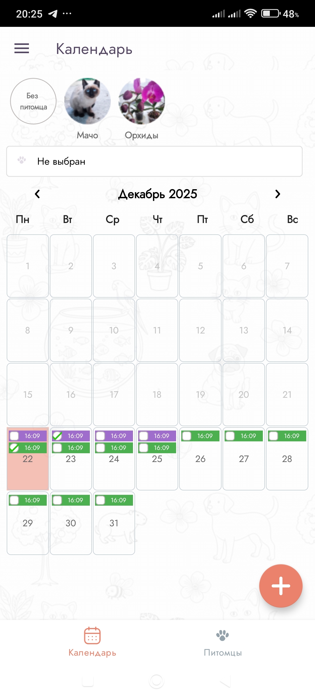 ✅Можно добавить любого питомца (от котейки до хомяка и попугая) и даже растение. И фото к нему.