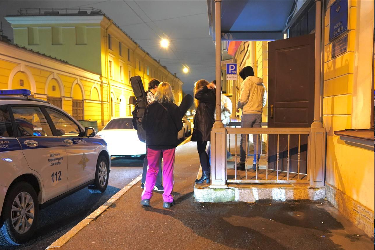 В 1-м отделе полиции Адмиралтейского района находились три человека: вокалист, басист и аскер (тот, кому слушатели при желании могли отправить деньги). Все — несовершеннолетние. Музыканты ждали приезда родителей, только в их присутствии возможно составить административный протокол.