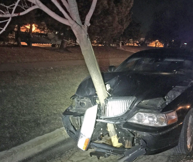 В штате Иллинойс, США, полицейские остановили автомобиль, из передней части которого торчало четырёхметровое дерево. Водитель оказался настолько пьян, что даже не смог самостоятельно выйти из машины.