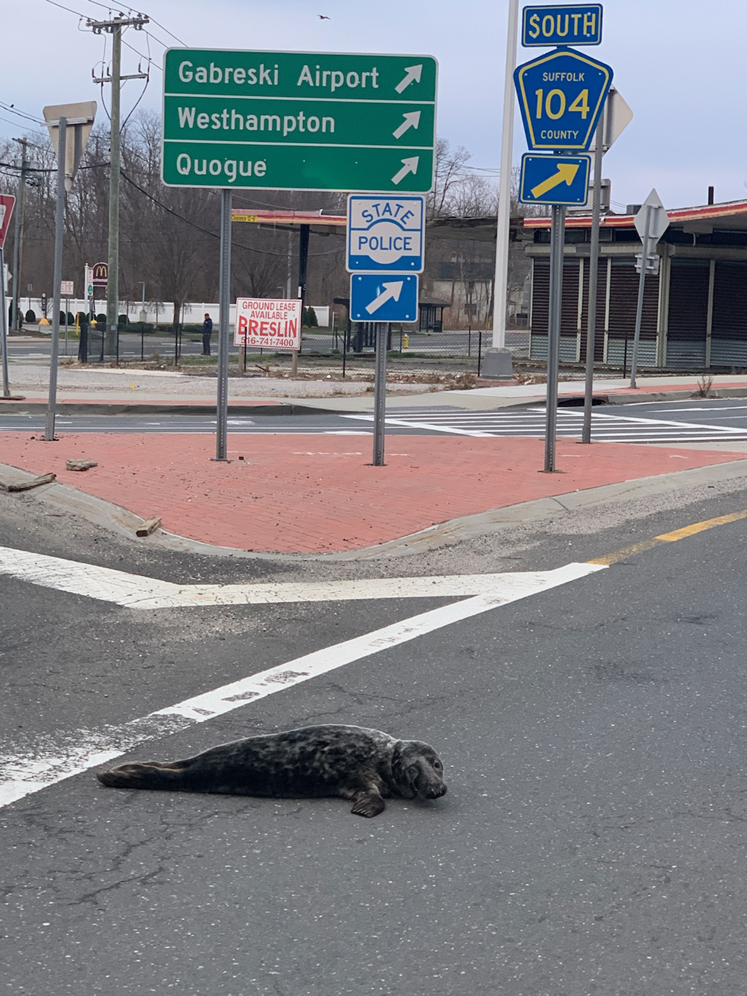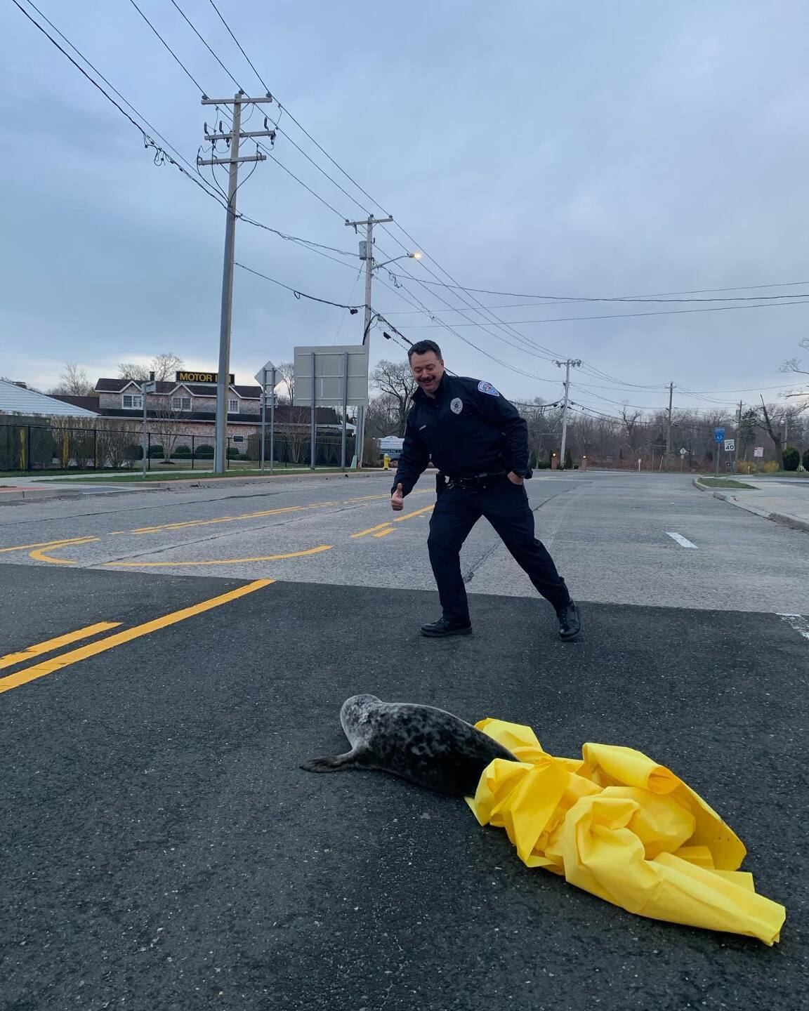 Сотрудники полицейского управления американского Саутгемптона поймали тюленя рано утром в воскресенье, 3 апреля. В службу 911 сообщили о животном, разгуливающем по стоянке возле алкомаркета. Стражи правопорядка прибыли на место и попытались поймать тюленя, но не тут-то было — ловкий зверь сбежал в сторону близлежащего отеля.