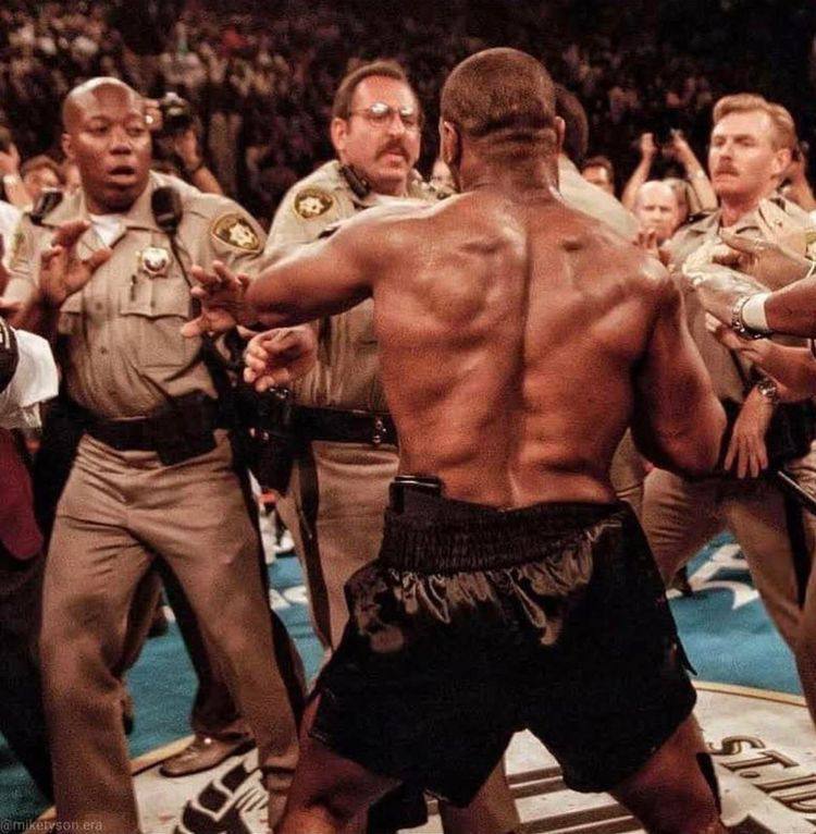 15 CollectorBeauty Спорт Полиция пытается усмирить рассвирепевшего Майка Тайсона 1 год назад После того, как он откусил часть уха Эвандеру Холифилду во время знаменитого поединка, состоявшегося в 1997 году Фотография США Спорт Бокс Майк Тайсон 1997 1 Ещё 0