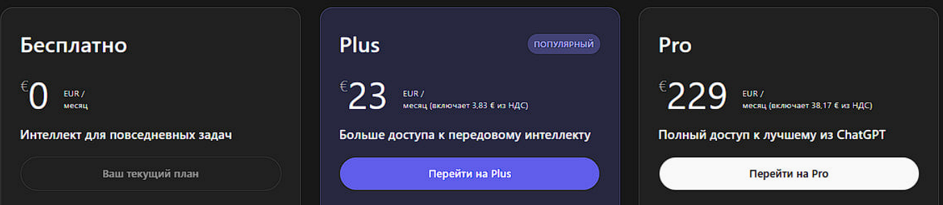 В 2025 году в интерфейсе сервиса отображаются такие ориентиры по стоимости: уровень Plus — 23 EUR в месяц (с включённым НДС), уровень Pro — 229 EUR в месяц (с включённым НДС). Итоговая сумма зависит от страны платёжного профиля и местных налогов. Если требуется понять, сколько стоит подписка на чат именно для вашего региона и способа оплаты, проверьте цену внутри раздела Plan/Billing перед подтверждением списания; там же видна дата следующего продления и можно изменить период оплаты.