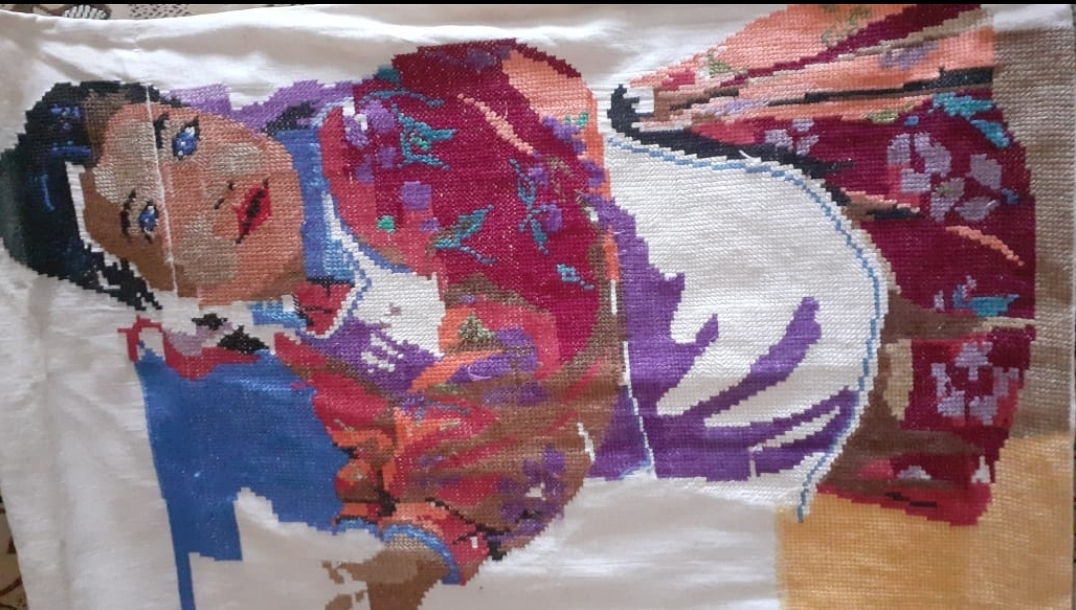 Здравствуйте. Помогите найти такую картину, она времён СССР. Бабушка нашла в своём сундуке, хочет довышивать да не помнит где какие цвета.