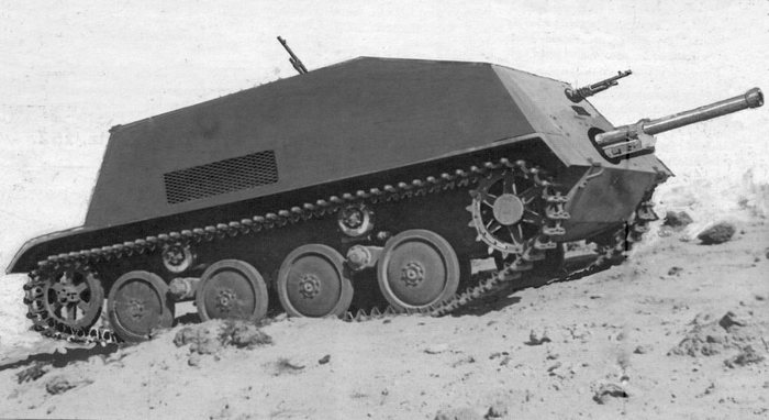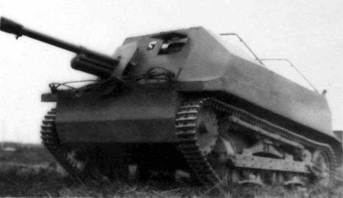 Весной стали появляться прототипы САУ, которые собирали прямо из готовых танкеток, с боевого отделения которых снимали крышу и переделывали переднюю часть. Всего были построены 4 штуки. Военных они устроили, но от серийного производства отказались по причине дороговизны.