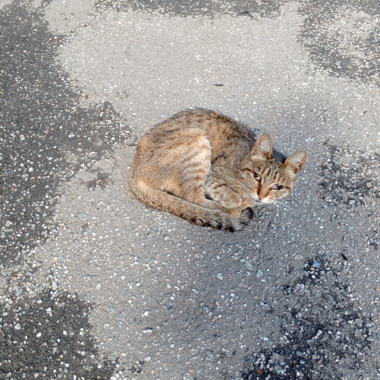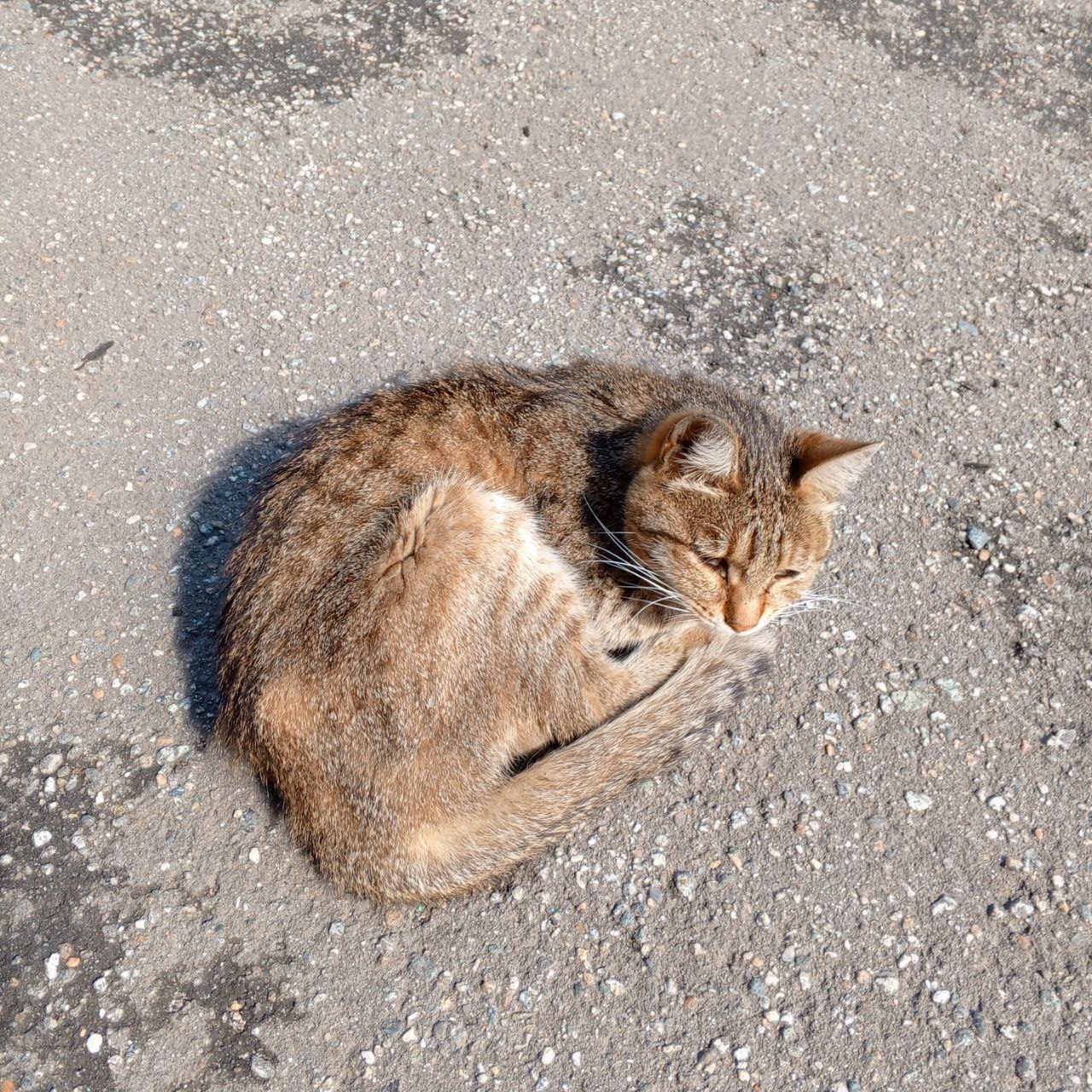 Полуслепая кошечка жила одна на улице у предприятия г. Москвы.